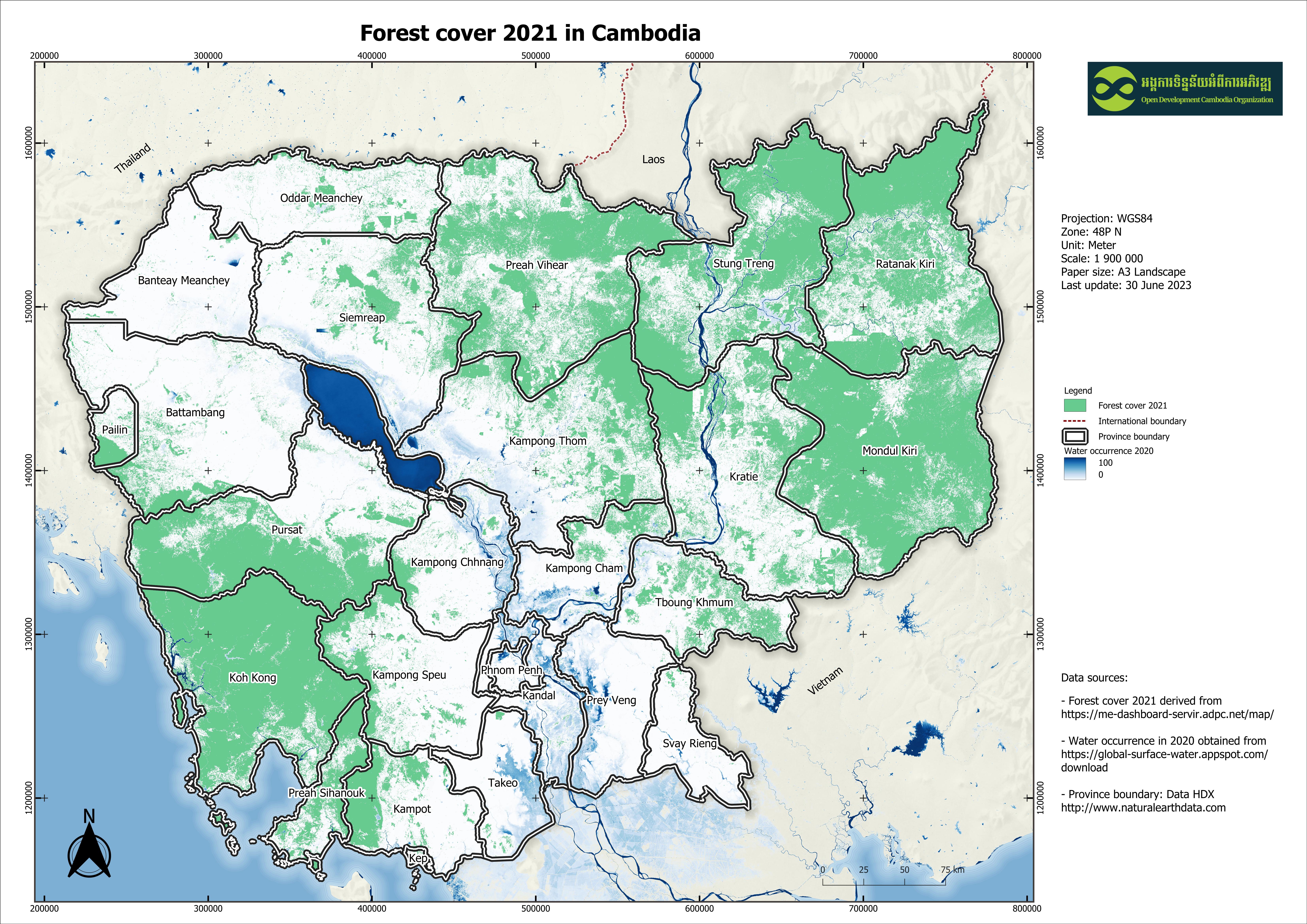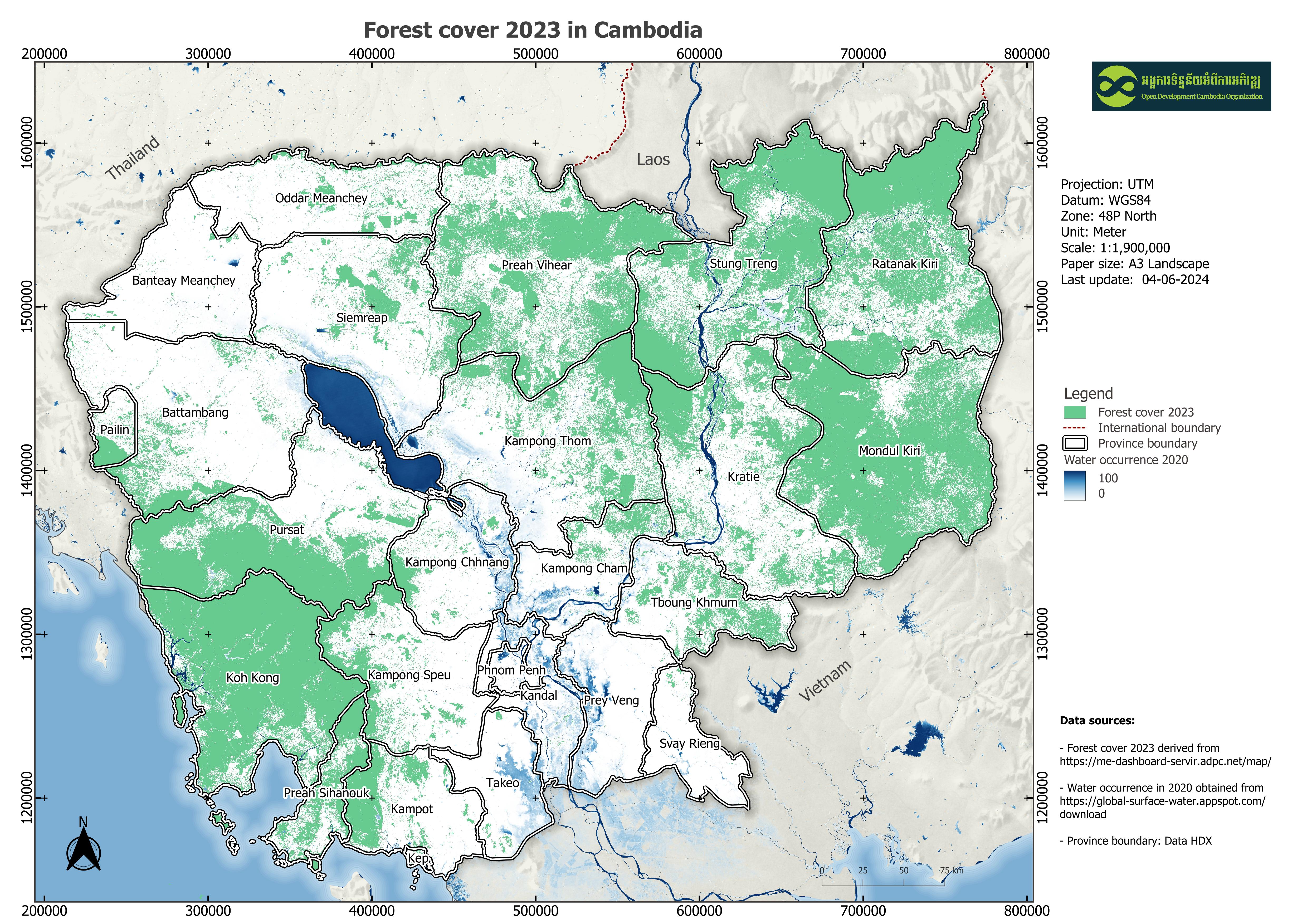 This dataset section focuses on Cambodia's annual forest cover. The quantitative data about the area of forest cover is derived from the tool and compiled to be available to download from 2015 to 2023 for purposes.