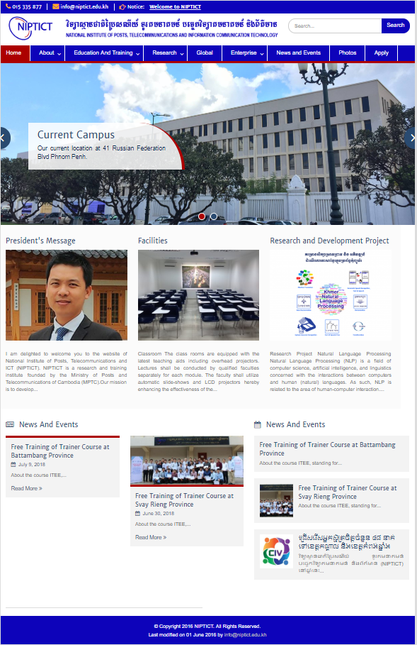 This is the screen capture of National Institute of Post, Telecommunications and Information Communication Technology's information such as faculty, address, phone number, and email address.